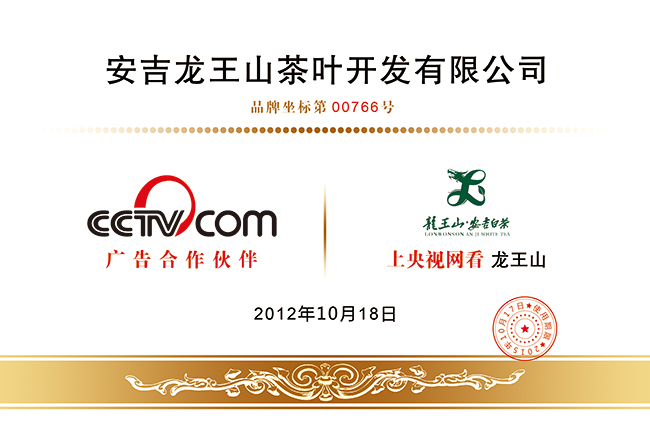 熱烈祝賀龍王山安吉白茶正式和CCTV簽約為廣告合作伙伴——上央視看龍王山