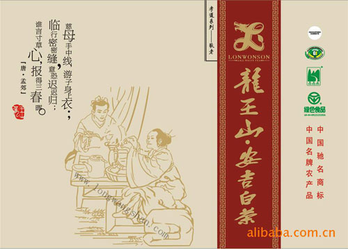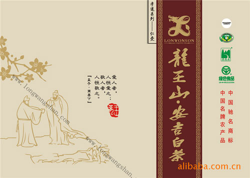 為傳承和發揚傳統孝文化,本公司隆重推出龍王山安吉白茶——孝道系列:“尊老、敬師、仁愛、立身”共四個精品禮盒茶包裝,以茶為媒,結合本地先賢孝歷史文化資源,倡導和諧社會,人人樹立“以孝治世、以孝治家、以孝立身、以孝結友”的觀念。如果本公司孝文化系列產品能在社會上取得一點微瀾作用的話,那是我們最大的收獲!