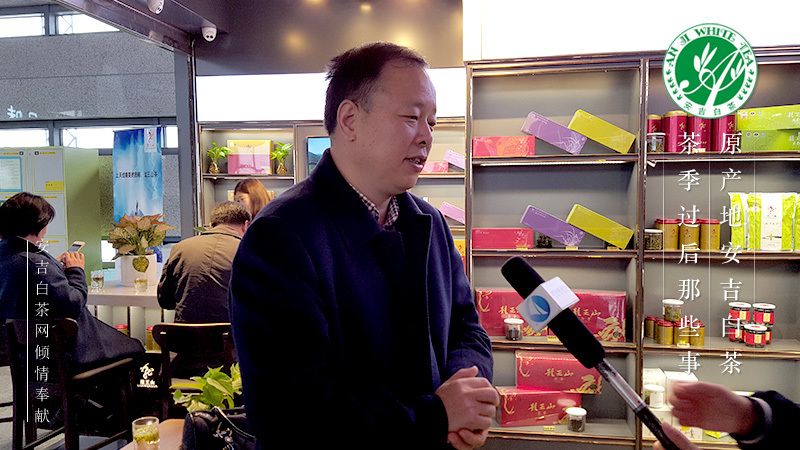 龍王山安吉白茶董事長潘元清接受湖州電視臺記者采訪