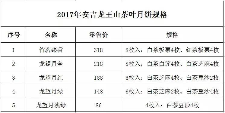 2017“龍王月”安吉白茶月餅正式上市,歡迎選購。因發(fā)貨原因希望新老客戶提前預(yù)定,公司按下單順序發(fā)貨。