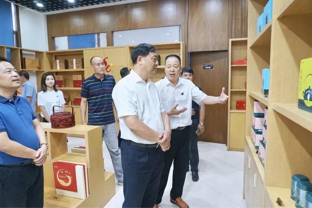 隨后,陳縣長在公司董事長潘元清的陪同下,參觀了公司文化展廳,全面了解安吉白茶產業現狀,公司發展歷程、種植基地、流水線加工、員工風采、專家團隊,以及經銷商服務等企業發展現狀。